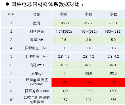 相較于18650,和21700電芯,華立源生產(chǎn)的26650電池在同等材料體系下,擁有更大的容量,同比18650電芯數(shù)量少52%,比21700少24%電芯數(shù)量。